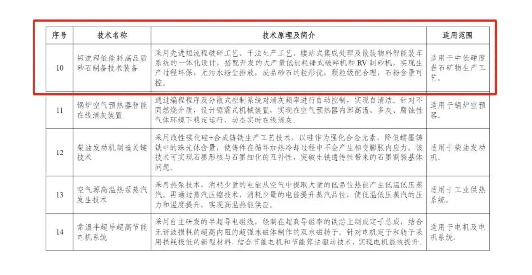 2023年,入選工信部《國家鼓勵發展的重大環保技術裝備目錄》,成為砂石裝備領域少數獲此殊榮的技術之一。