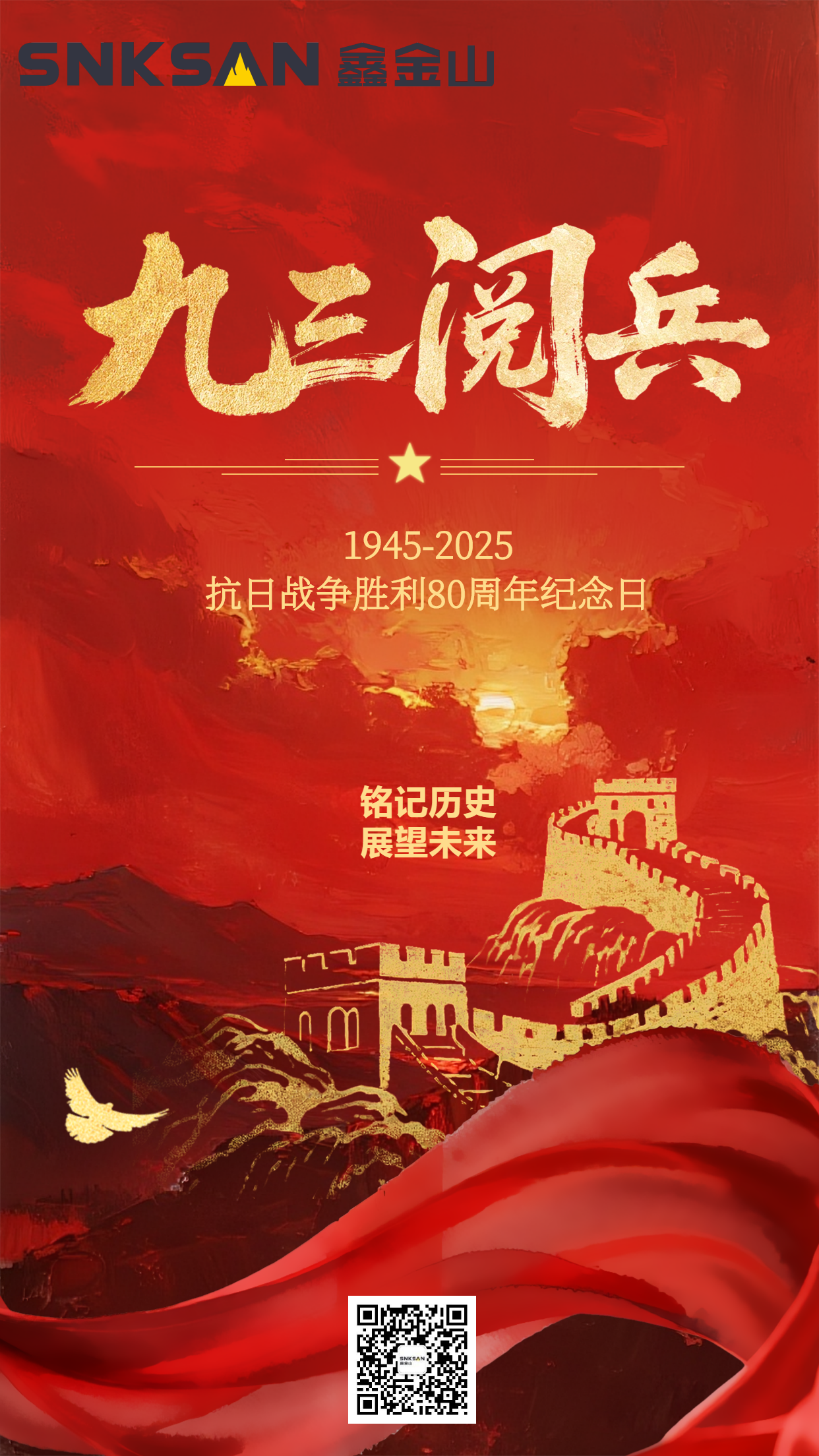 2025 年 9 月 3 日,我們迎來中國人民抗日戰(zhàn)爭暨世界反法西斯戰(zhàn)爭勝利 80 周年的光輝時刻。80 載時光荏苒,鐫刻著中華民族在烽火中挺立的不屈脊梁,也見證著華夏兒女賡續(xù)精神、砥礪前行的奮斗征程。鑫金山作為深耕破碎裝備領(lǐng)域的重工企業(yè),始終與祖國發(fā)展同頻共振,既銘記歷史中先輩們的無畏擔(dān)當(dāng),也深知當(dāng)代工業(yè)人肩負的使命。在這意義非凡的時刻,鑫金山回望崢嶸歲月、錨定未來航向,以精益求精的破碎技術(shù)、堅韌不拔的制造匠心,向偉大勝利致敬,為民族工業(yè)振興注入強勁動能,讓重工力量與民族精神同輝。