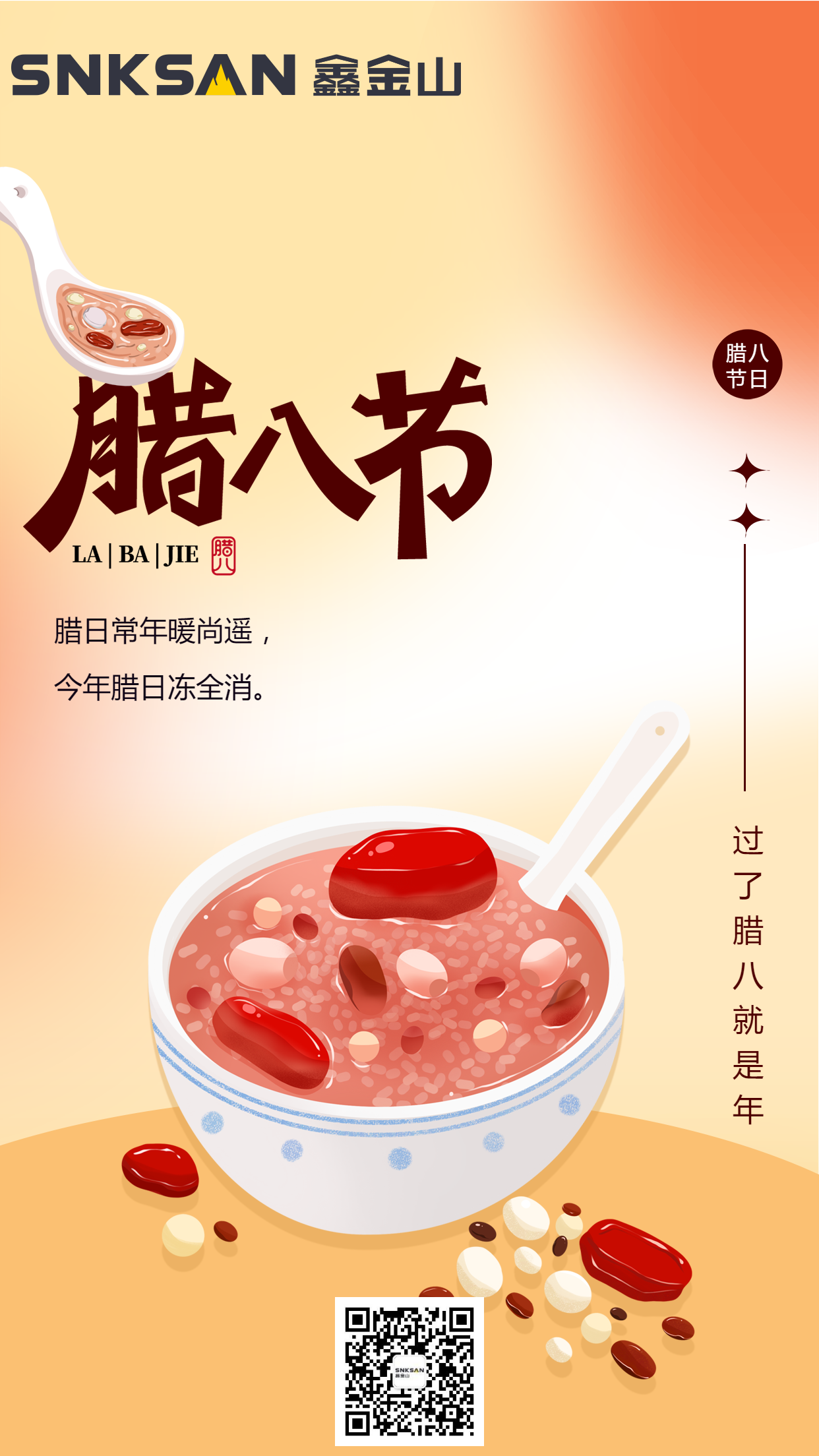 導讀:過了臘八就是年 臘八節 臘八粥暖,藏盡家人牽掛 智造精工,守定客戶之約 寒冬臘八,愿這份匠心與溫情 跨越山海溫暖你我 鑫金山智能裝備 以精工伴同行,歲歲皆相伴 再忙,也要喝